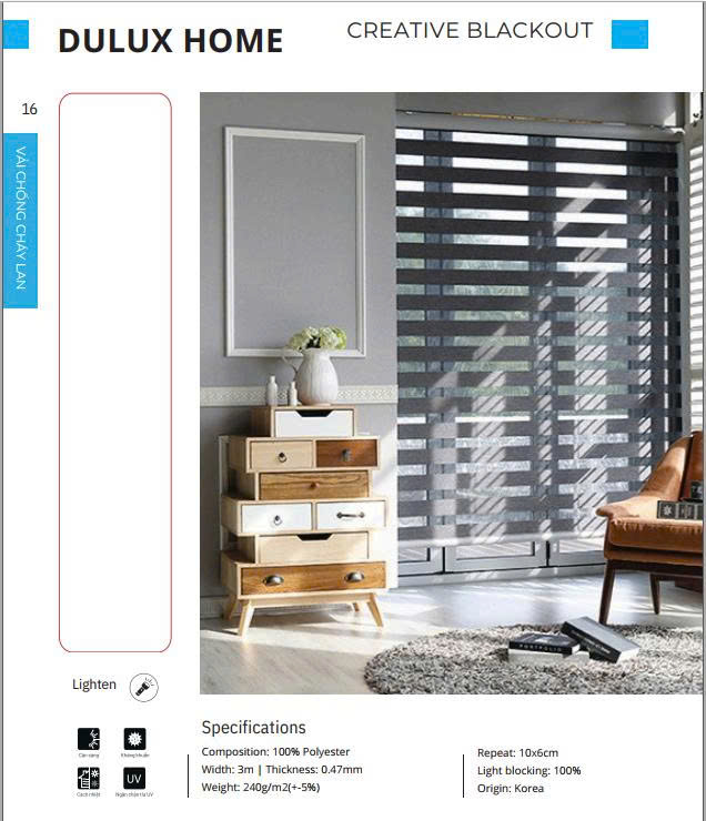 • Độ cản sáng: 100%